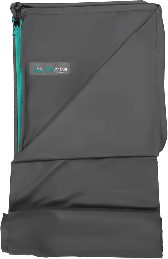 - CONSTRUCTION: FE Active’s polyester sheet sleeping bag liner is designed of soft and skin-friendly breathable materials. Its drawstring hood provides major protection and comfort while adventuring. This bivy sack is ideal for family camping trips. The Chia outdoor sheet's length is the perfect fit for adults and children single-size sleeping bag, sleeping cot, or inflatable mattress. The liner has a high-grade dual slider zipper that allows to be opened and closed from the inside and outside