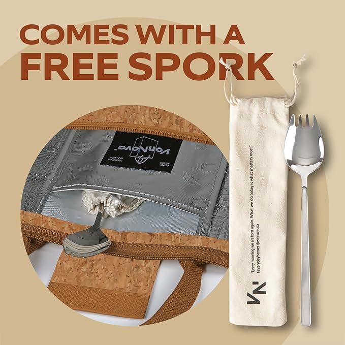 VonNova Insulated Lunch Box for Women, 7L Capacity, Leakproof Lunch Tote Bag, Durable Lunchbox made from Cork Material, Adult Cooler Bag for Work, Picnic, Travel and more (Cork)