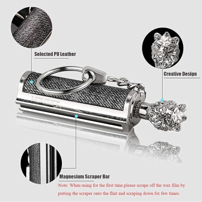 Permanent Match Keychain Lighter, Flint Matchstick Fire Starter Lighter, Reusable Flint Waterproof Camping Emergency Survival Gear (Lion)