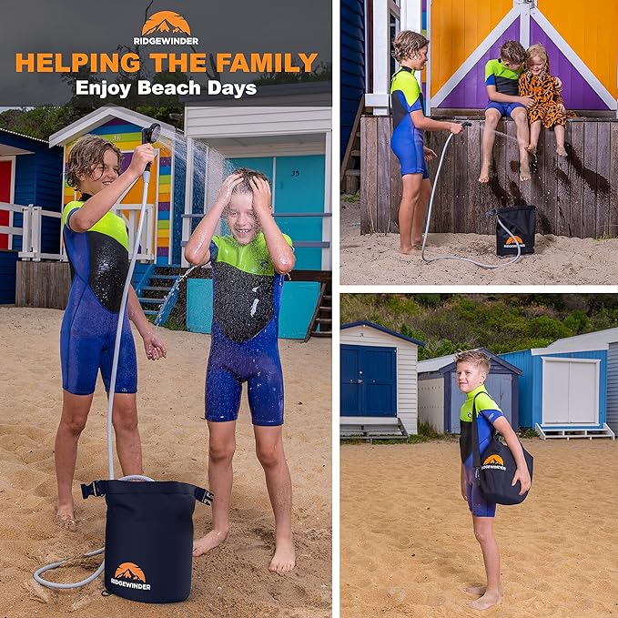 • BEACH DAY MADE EASY: Pack our portable shower with you on those special beach days. Once the fun is over, simply fill the 10L Dry Bag with fresh water and wash away all the sand from the day, never bringing it back into your car or the house. Better yet, use our camp shower, to rinse all the salt off at the end of the day, to leave you feeling clean and refreshed.
