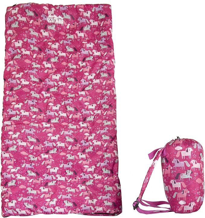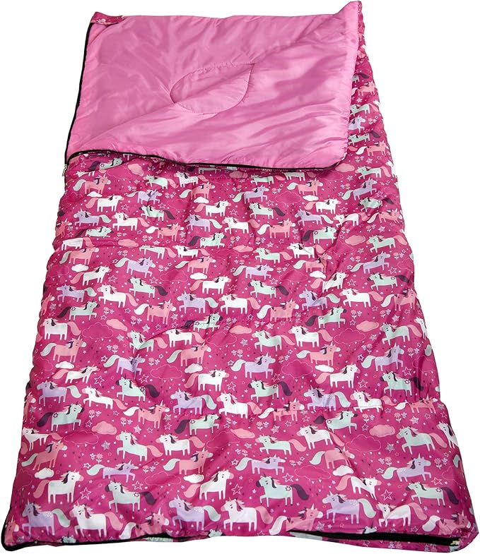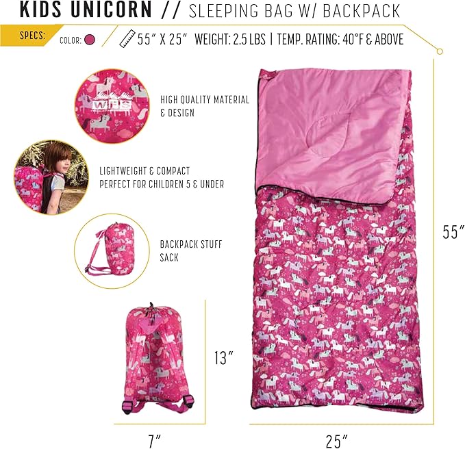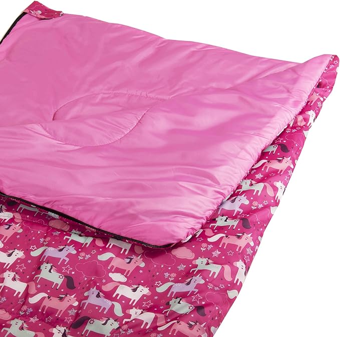 Kids 55" x 25" Unicorn 50 Degree Sleeping Bag with Backpack Stuff Sack, Pink