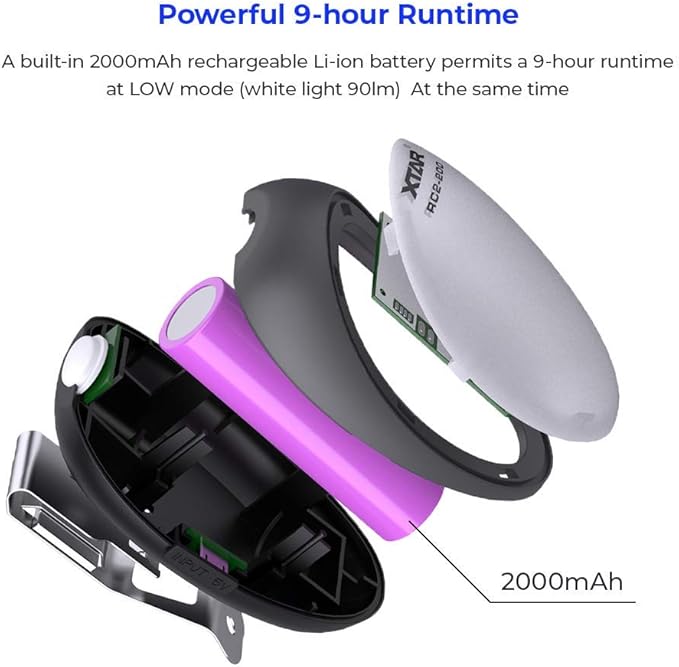 XTAR RC2-200 Night Running Light,USB Rechargeable Waist Light,LED USB Reading Light for Bed 4 Colors 3 mods Light for Camping Reading Running