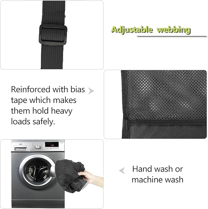 - ADJUSTABLE SHOULDER STRAP & SECURE DRAWSTRING CLOSURE: The large mesh beach bag has an adjustable carrying strap, you can adjust them to the length that suits themselves. Sling design can free up your hands, and a sturdy wide strap avoid digging into your shoulders and help reduce your shoulder burden. Besides, the swim pool bag is a drawstring design to store gear easily and take them out quickly.