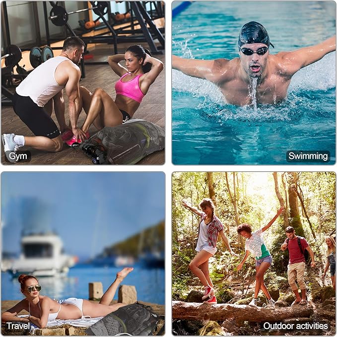 - FOLDABLE ZIPPER POCKECT & EASY TO CARRY: Extra zipper pockets of our mesh drawstring backpack make it easy for you to pack phones, keys. Besides,you can easily fold our mesh beach bag into the zipper front bag, which takes up hardly any space that can easily fit in a purse, pocket.You will always have a mesh swim bag with you whether you go to gym or beach trip.Our mesh drawstring bag is perfect for gym bag,swim bag,basketball bag,soccer bag,sports bag,beach gear bag.