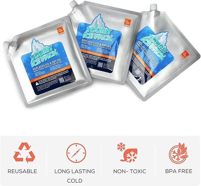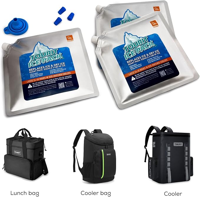 TOURIT Reusable Ice Pack for Coolers Long Lasting Cooler Ice Packs for Cooler Bag Lunch Bags/Boxes, Cooler Backpacks, Freezer Packs for Coolers