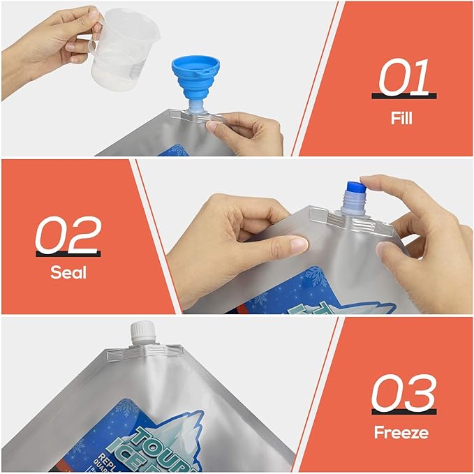 - Easy to use: Simply add water once, don't bother changing the water over and again, before first use, utilize the included funnel to add water once, shake well, screw on the lid, and then freeze until prepared to utilize is okay