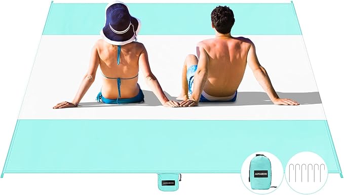 AlphaBeing Beach Blanket Waterproof Sandproof, Large Beach Blanket 7'x7'(1-6 Adults), Quick-Drying Beach Mat Sand Free, Lightweight Beach Mats for Outdoor Picnic Camping Travel with 6 Stakes
