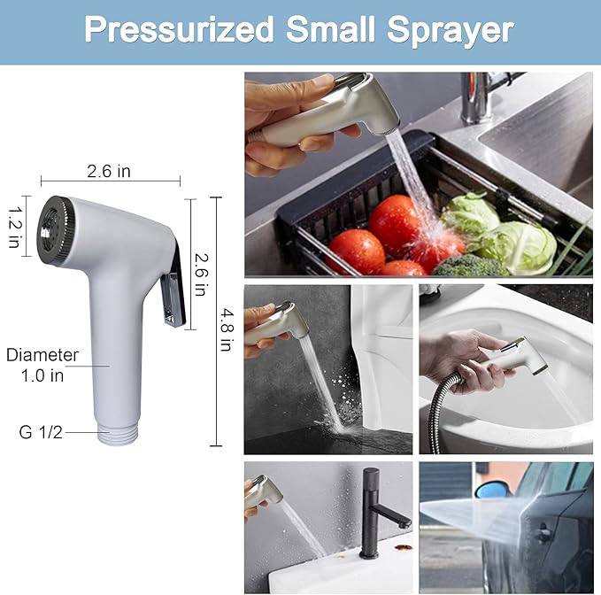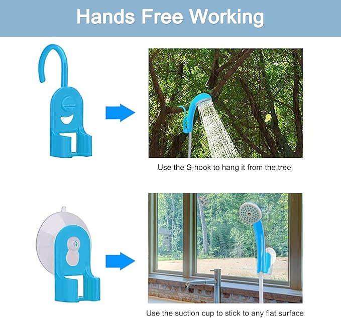 - ✅2 shower heads for various purposes: Shower head provides a mild flow for bathing or watering plants, while the small booster head provides a concentrated flow for car or floor cleaning; The hook can be flexibly hung on the tree or shelf or suction cup according to the needs to be installed on the window or wall