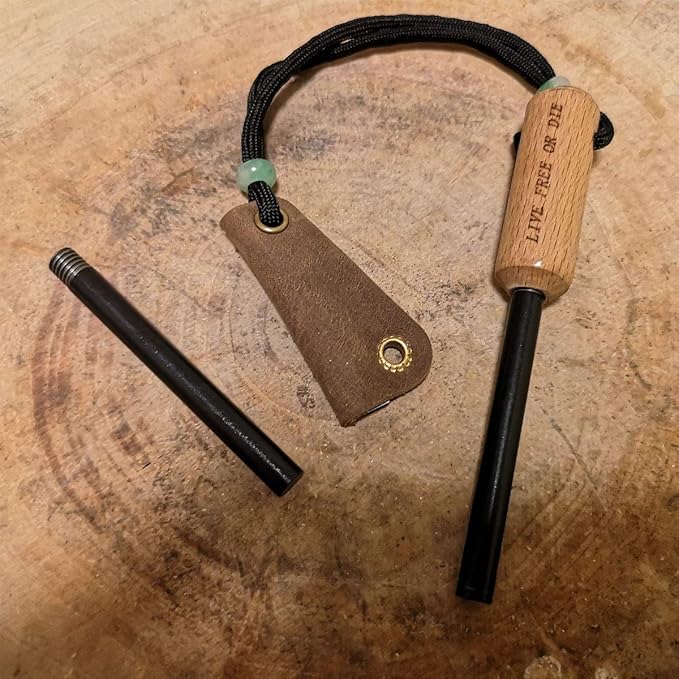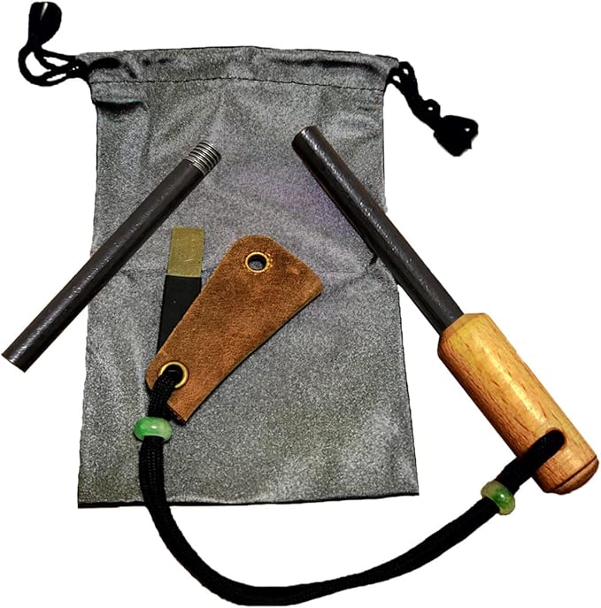 BSGB Ferro Rod Fire Starter with Wood Handle 5/16" Inch Survival Magnesium Ferro Rod with Striker & Paracord Rope Camping Survival Kit