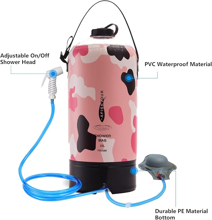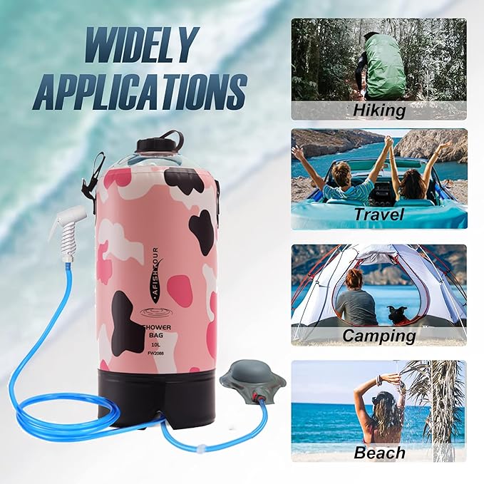 • VERSATILE USAGE: While ideal for camping trips, this portable shower bag can also be used in a variety of outdoor settings. Whether you're at the beach, on a hiking adventure, or on a remote travel expedition, the camping shower ensures you have access to a convenient and refreshing shower experience.