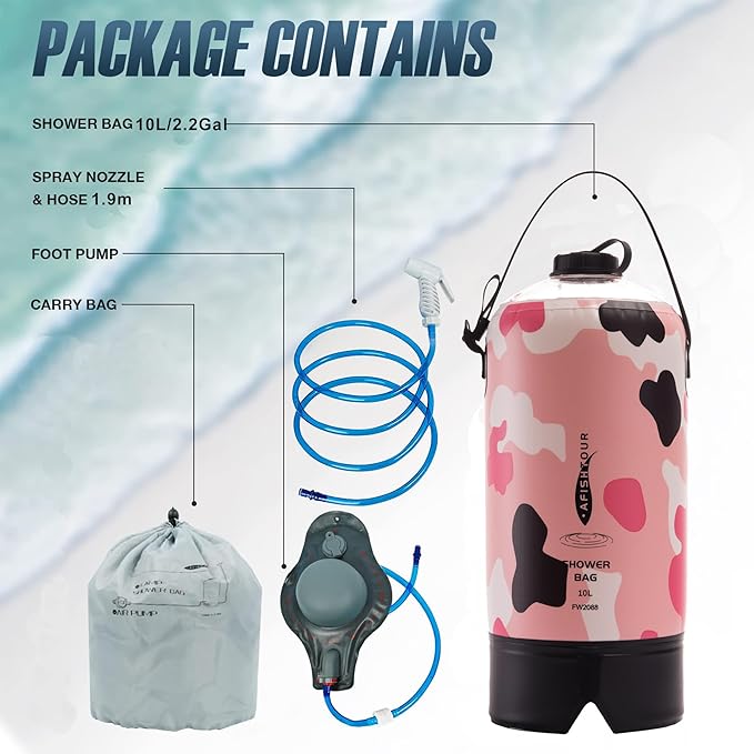 • GENEROUS CAPACITY: With a capacity of 10 liters or 2.2 gallons, this camping shower bag provides an ample water supply for showering, rinsing off sand, or cleaning equipment. The large capacity reduces the need for frequent refills, allowing for longer use.