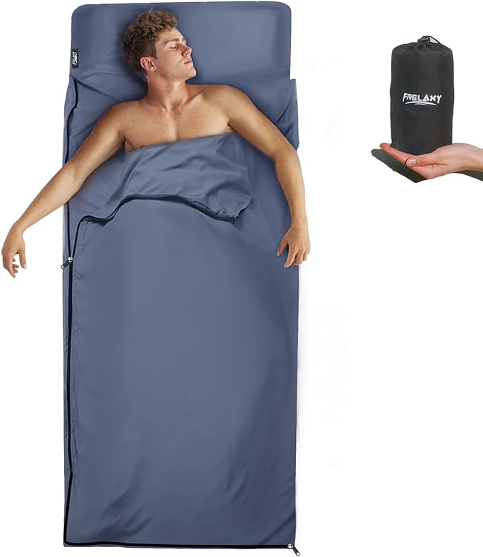Frelaxy Sleeping Bag Liner, XL Travel Sheet & Camping Sheet for Backpacking, Hotel, Hostels & Traveling, Comfy & Easy Care, Full-Length Zipper/No Zipper
