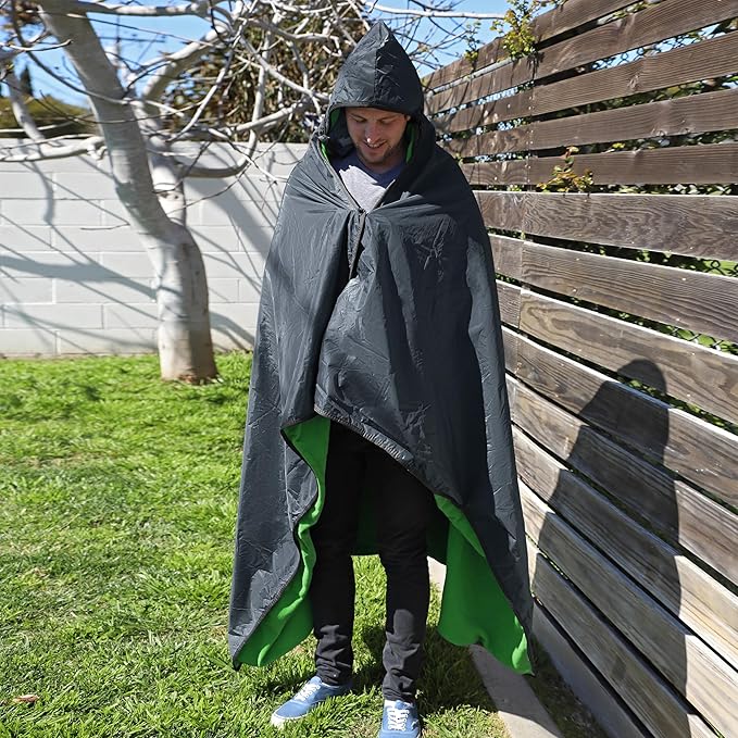 - 【Hooded Design】This blanket poncho comes with a hood that can be tucked into the blanket. When it starts raining you can use it as a rain coat , just simply put the hood on and wrap it around you.