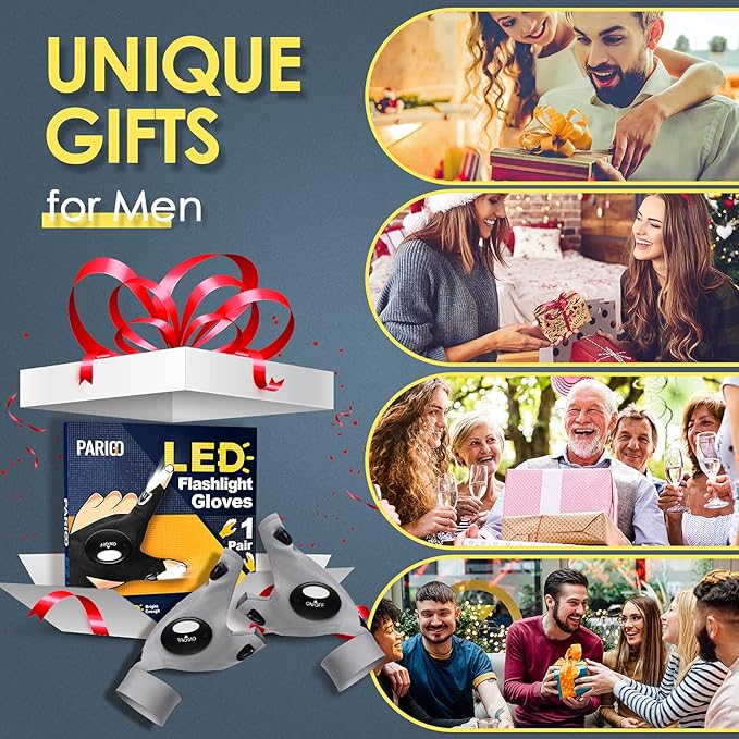 PARIGO LED Flashlight Gloves, Father Day Mens Gifts for Dad Husband Grandpa, Cool Gadget Christmas Birthday Gifts for Men Adults Him Boyfriend Guy