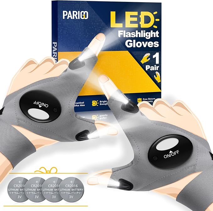- Personality Gifts Wrap, Worry-free Service - If you’re looking for unique gear as stocking stuffers or birthday gifts for family or friends, the PARIGO LED flashlight gloves are the perfect gift ideas you need. All PARIGO products are backed by a hassle-free return policy. For any product issue, we offer 100% money-back and a 24-month worry-free after-sale service. Simply send us a request, we will assist you to solve any problem.