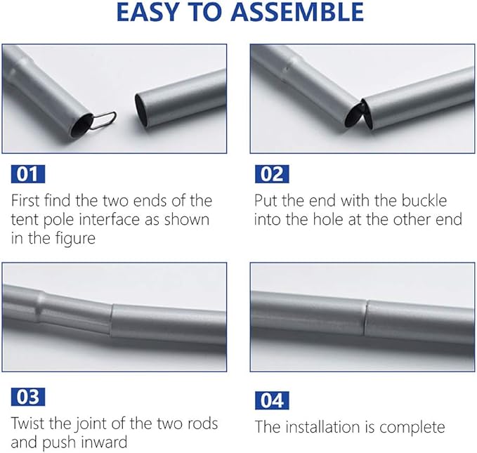 - Easy to assemble:There is a reed buckle on the rod mouth, you only need to align the hole, twist the interface of the two rods and push inward to complete the assembly.