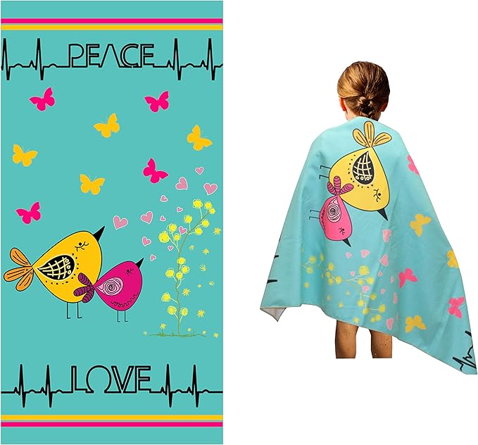 Microfiber Beach Towel for Kids - Thin and Large (30"x60") - Peace Love - Absorbent, quick dry, sand free, lightweight, blanket - toddler, girls, boys - For Sports, Pool, Picnic, Camping, Travel, Swim