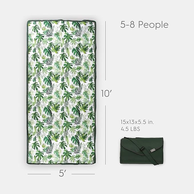 Little Unicorn Outdoor Family Picnic & Beach Blanket, Water-Resistant, Compact Fold, XL Size, 5 x 10 feet, (Tropical Leaf)