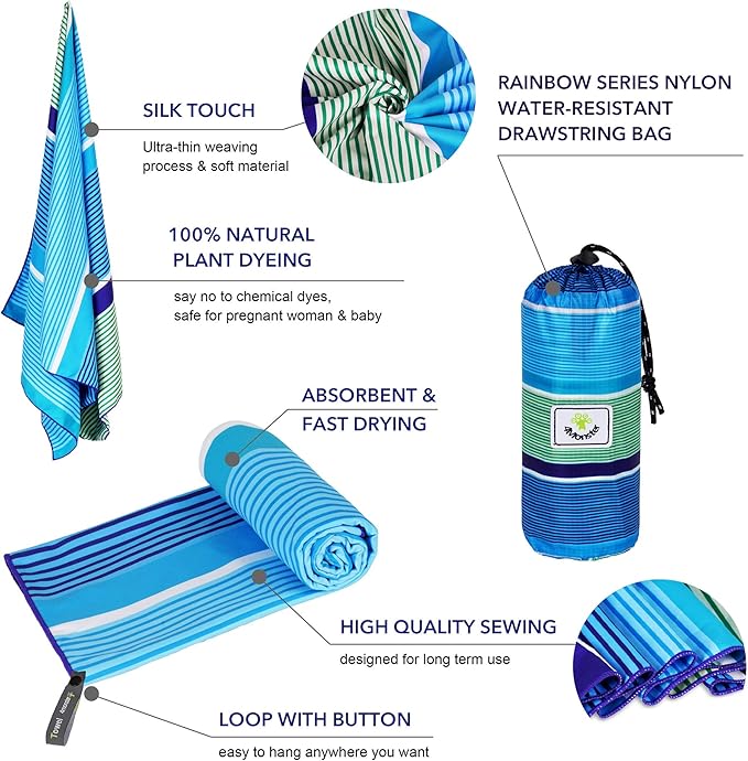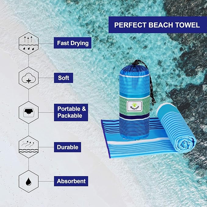 - 【100% Sand Free】Designed for beaches and camping,engineered to repel sand, ensuring that sand grains won't stick to the towel. After use, simply shake off the towel, and sand will easily fall off, making it hassle-free to clean.
