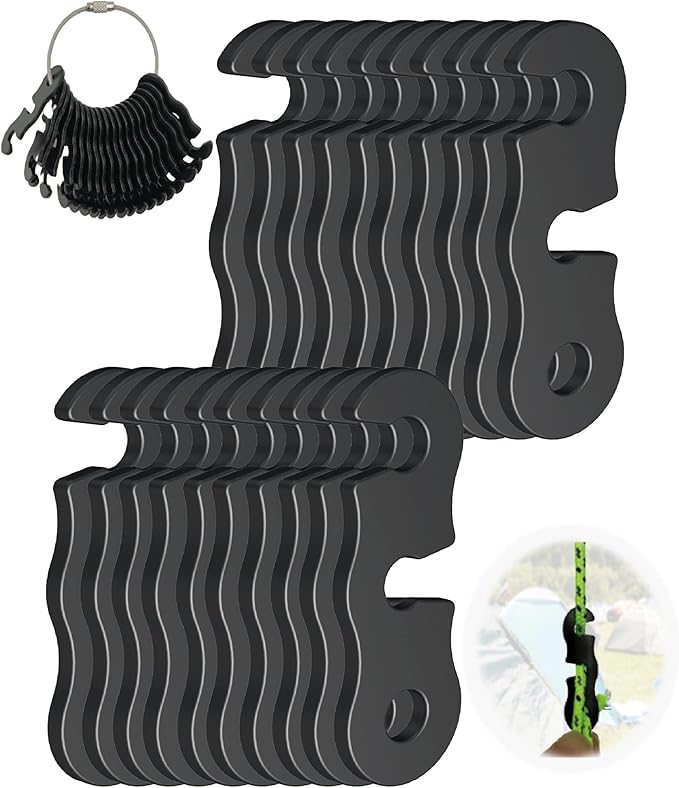 - ✅IDEAL FOR OUTDOOR ACTIVITIES - Has your tent flown away? You don’t have to deal with that problem anymore because guyline tensioner rope tightener is designed to make your camp life easier, featuring ultralight ring design that securely tensions your cord yet easily eliminating the hassle of tying and retying knots in cold or wet weather.