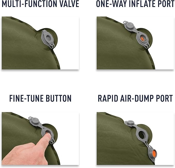 - Multi-function reversible valve for fast and easy inflation, one-way deflation for quick packup, and fine-tuning of air pressure