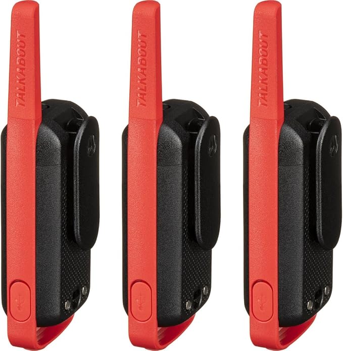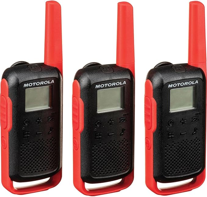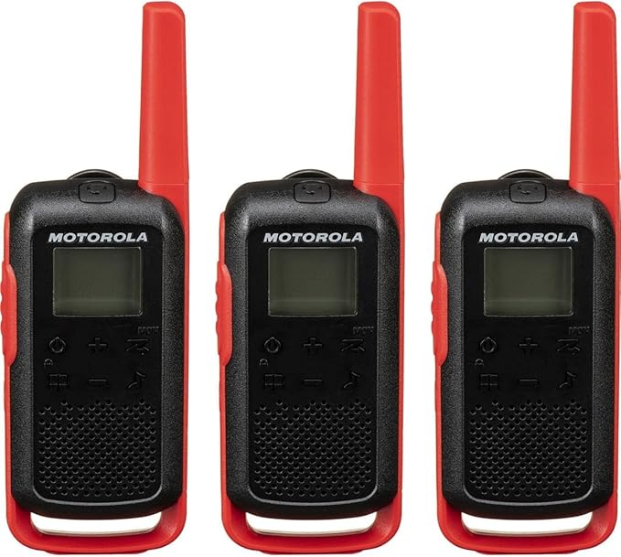 Motorola Solutions, Portable FRS, T210TP, Talkabout, Two-Way Radios, Rechargeable, 22 Channel, 20 Mile, Black W/Red, 3 Pack