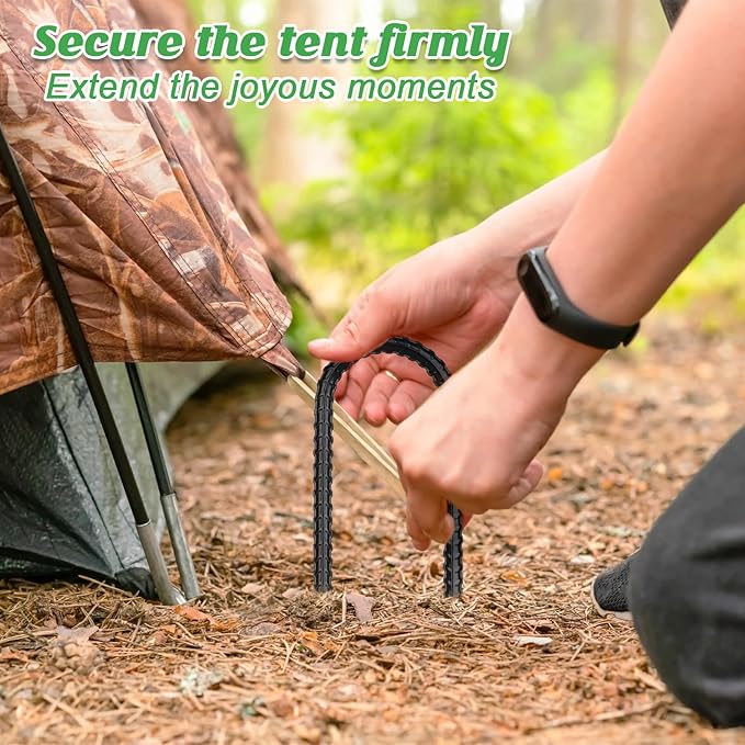 - 【KEEP YOUR KIDS SAFETY】Children's safety should be given priority. 12 inch U-shaped rebar stakes can prevent the trampoline from overturning or moving during use,and protect children from falling down and hitting the ground. For the safety of your baby and the peace of mind of parents, every parent should consider buying some extra things to fix your trampoline,camping tent or your child's football goal and swing.