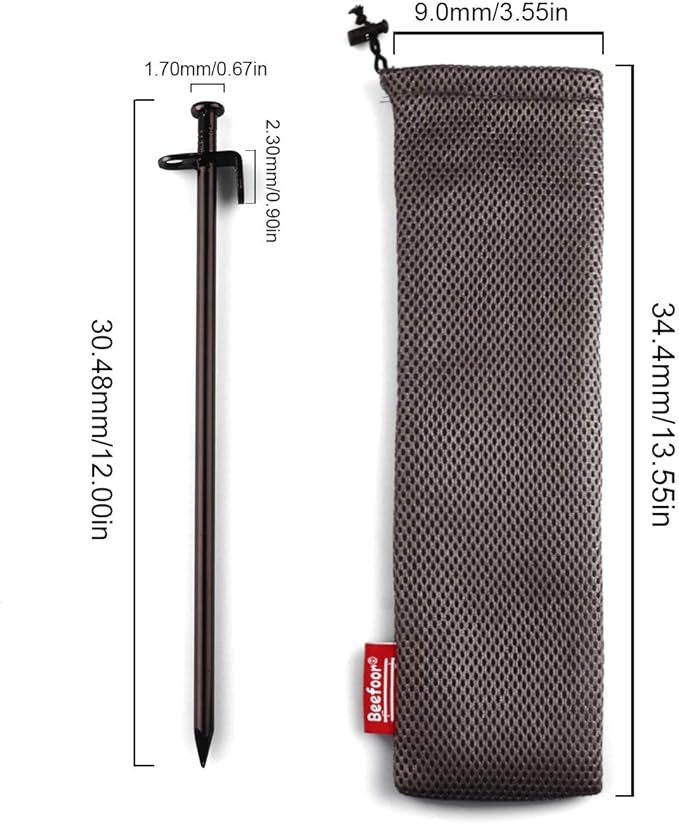 - Stakes Size: The tent stake is 12 inches long and 2/5 inches in diameter which is much bigger and stronger than most stakes on the market.