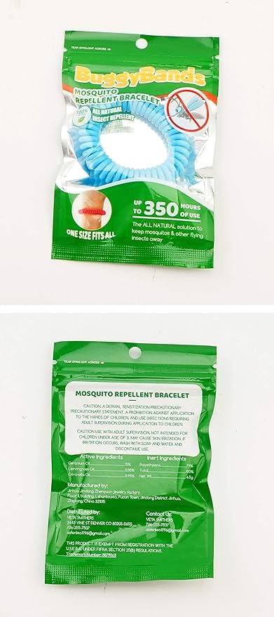 - Natural & Deet-Free: Our Bracelets are made with: Geraniol Oil, Lemongrass Oil and Citronella Oil. Research shows that essential oils can effectively repel mosquitoes
