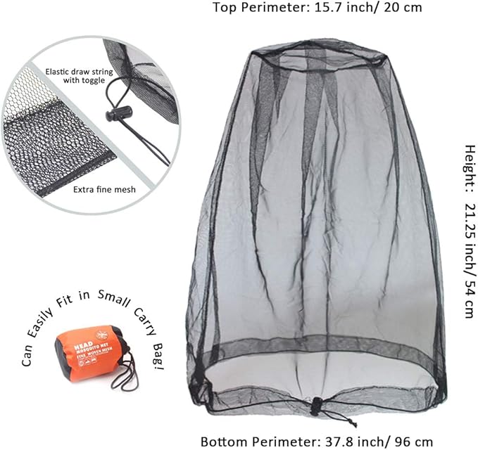 - High Quality Material- Our head mesh net is made of extra fine nylon mesh with 522 holes per square inch/ 81 holes per sq cm. Tight enough to keep the mosquitoes and any other annoying bugs away from your face and neck.