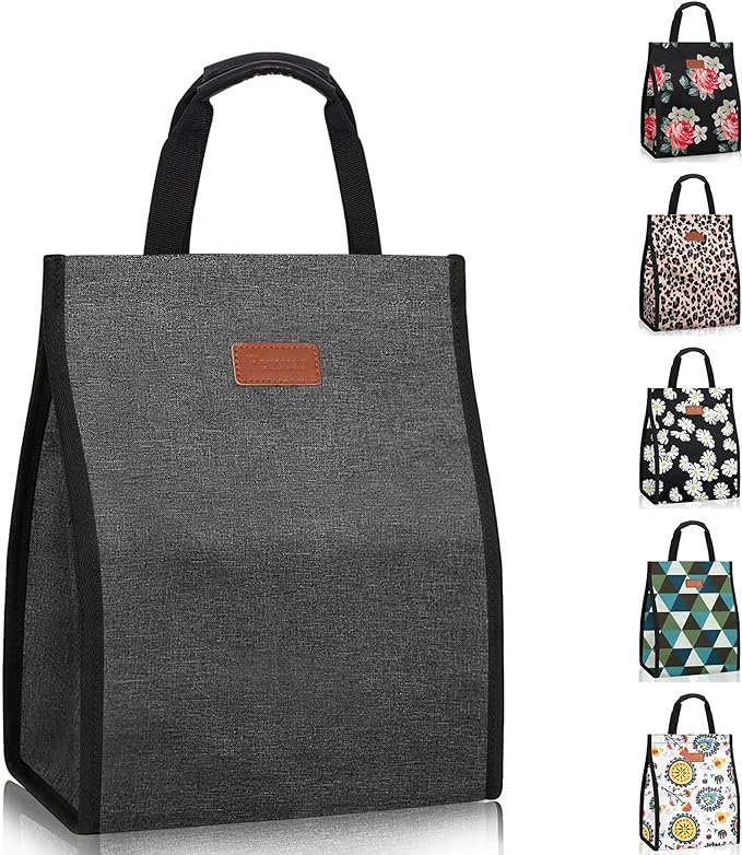 Lunch Bags for Women Insulated Reusable Lunch Tote with Internal Pocket, Lunch Tote bag for Work (Charcoal Grey