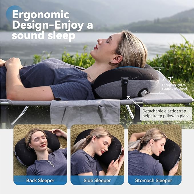 - Multifunctional Use: This handy blow up pillow can be used not only for traveling, trekking, road trip, beach, yoga, but also as a lumbar support for office chair, head rest pillow for recliner and neck pillow for driving. It will be a great addition to your lightweight gear on the go. Take our compact inflatable pillow and enjoy your adventure energetically.