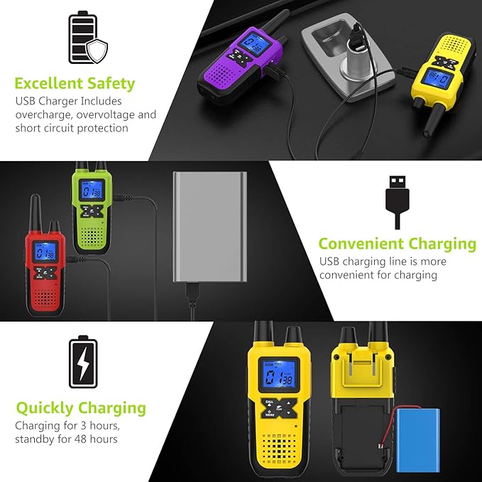 - 【Complete Set for Instant Use】 : Unbox to find everything you need: rugged walkie talkies for all ages, original earpiece and mic sets for private chats, original USB charger for rapid charging, Y cable for simultaneous charging, high-capacity battery for extended communication time, belt clip and adjustable lanyards for ease of carry. Your one-stop communication solution is here, whether for work, play, or anything in between