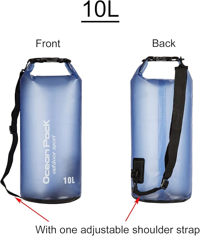 - 【Durable】The waterproof dry bags are Made by thick and soft Durable wear-resistant material,But light weight 10-Liter(only 215g/0.47 lbs) and 20-Liter(only 300g/0.66 lbs),The waterproof dry bags 10l/20l nicely adapts to all kinds of weather and environment.These 10l/20l dry bags are very good waterproof dry bags for Kayaking Camping boating Swimming Hiking etc.
