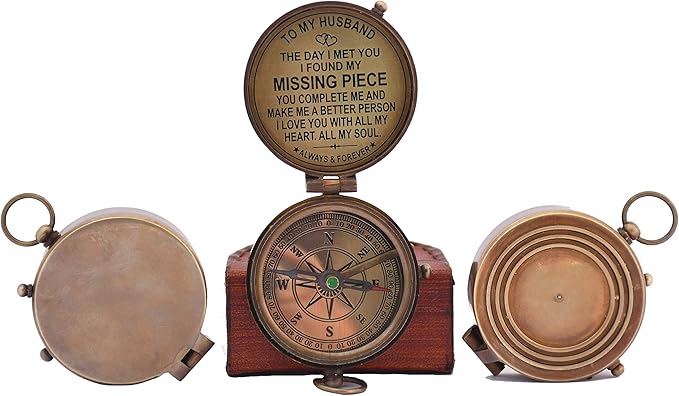 - Engraved inside Led :- To my husband The Day I Meet You I found you ..... Always and Forever Brass Compass is the best gift for your family and friends. Portable design, convenient to carry.