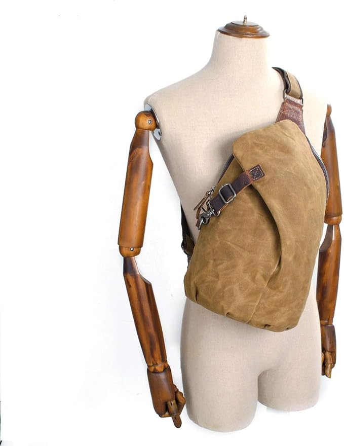 Men's Sling Backpack Waxed Canvas Crossbody Bag Casual Daypacks