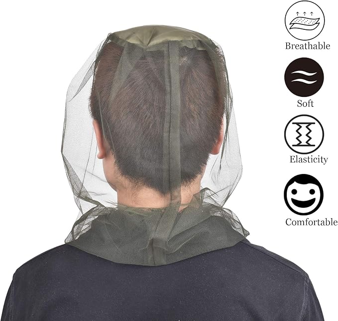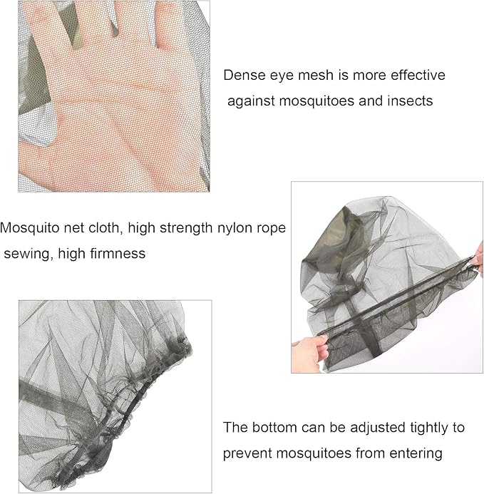 - High-quality material: Mosquito head netting is made of sturdy fabric, breathable fabric provides you the protection of mosquitoes and any annoying insects but allows fresh air in and clarity of vision through the net, super easy to put on and take off