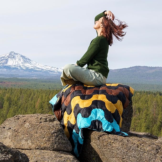 Horizon Hound Down Camping Blanket - Outdoor Travel Quilt | Sustainable, Insulated, Lightweight & Warm Gear for Sleep, Camping, Stadium, Hiking & Festivals | Water Resistant, Packable & Compact