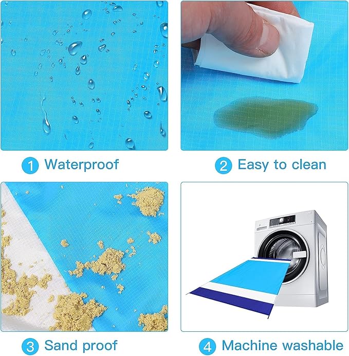 - 🏖️Beach Blanket Waterproof Sandproof:78''×81''size beach blanket,suit for 1-5 adults in total,odorless,made by parachute fabric.Rip-stop 210T polyester,light weight and small after folding.12 oz easy to carry,small and mighty!