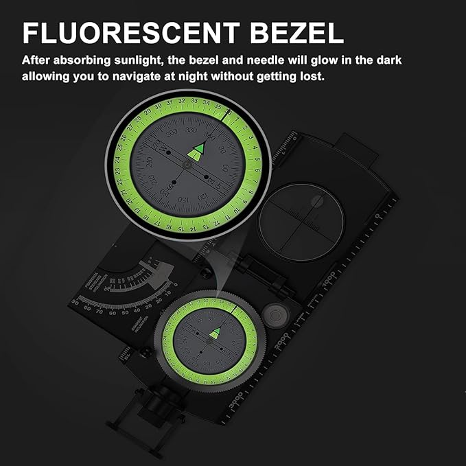 - MULTIFUNCTIONAL TOOL - This compass features a clinometer for measuring height and slopes, a luminous function, and magnifying viewer for easy reading in low-light conditions, making it a useful tool for any outdoor adventure.