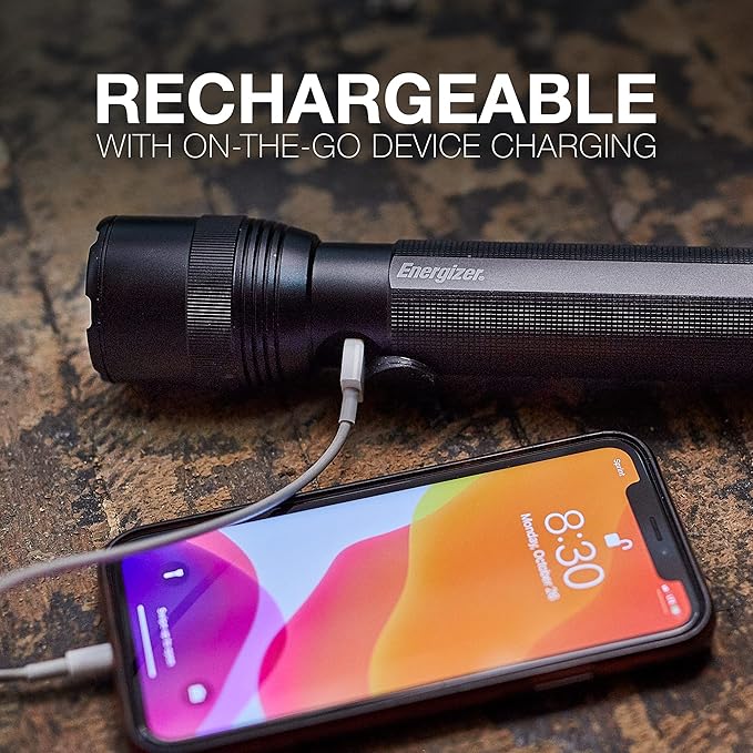 - [RELIABLE EMERGENCY LIGHT]: The Energizer TAC R 1000 Rechargeable Tactical Flashlight combines a powerful beam and durable body with practical emergency features, including Strobe light mode and UBS port-out to charge your other devices