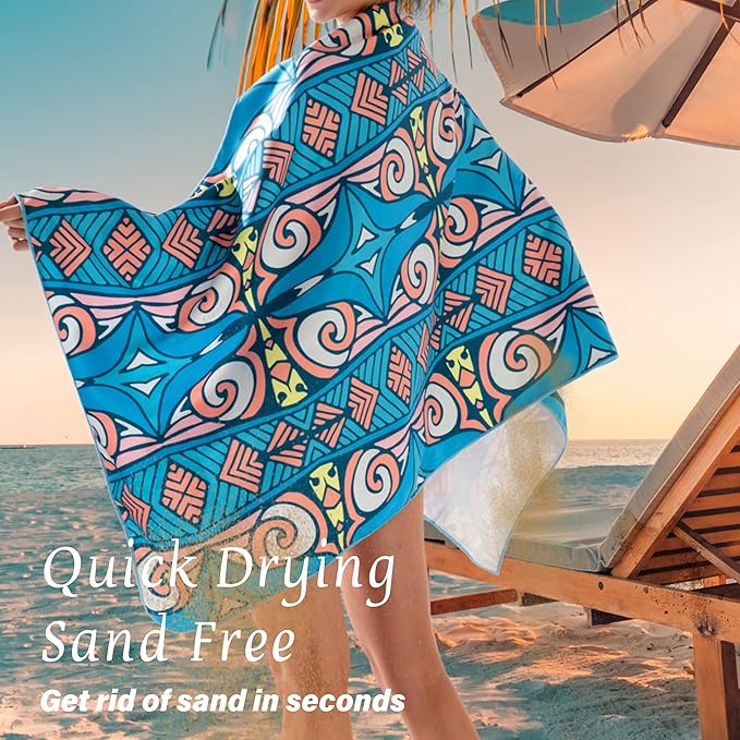 - Highly Absorbent & Sand Free: Our beach towel is made of quick-drying fabrics. Designed to dry quickly and repel sand, the soft and absorbent beach towel is capable of absorbing up to 5 times its own weight in water. It also features a hanging loop for quick drying.
