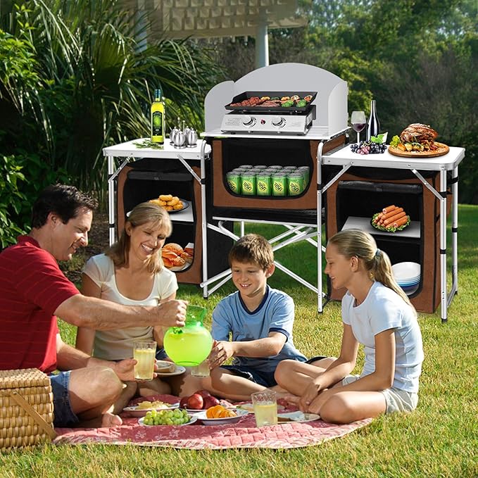 - 【Easy Maintenance】The portable camping kitchen table is easy to clean up due to aluminum material. Perfect for camping, picnics, garden barbecues, backyard parties, etc.