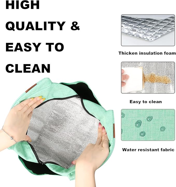 - ❤LONG-LASTING: Strong linen handles and heavy duty nylon connect by dense stitching can provide long-lasting against daily activities. Feel free to carry your food with this lunch bag and enjoy your lunch!