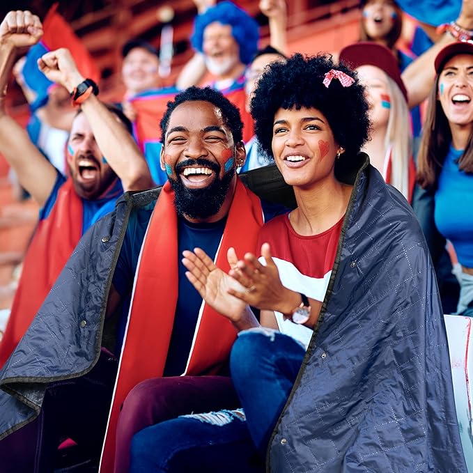 - REVERSIBLE AND WEARABLE: This sports blanket is reversible and the fleece blanket can be transformed into a waterproof poncho stadium blanket with our 3-button design to keep you cozy and dry at any sports game or festival. Big enough to share with a friend!