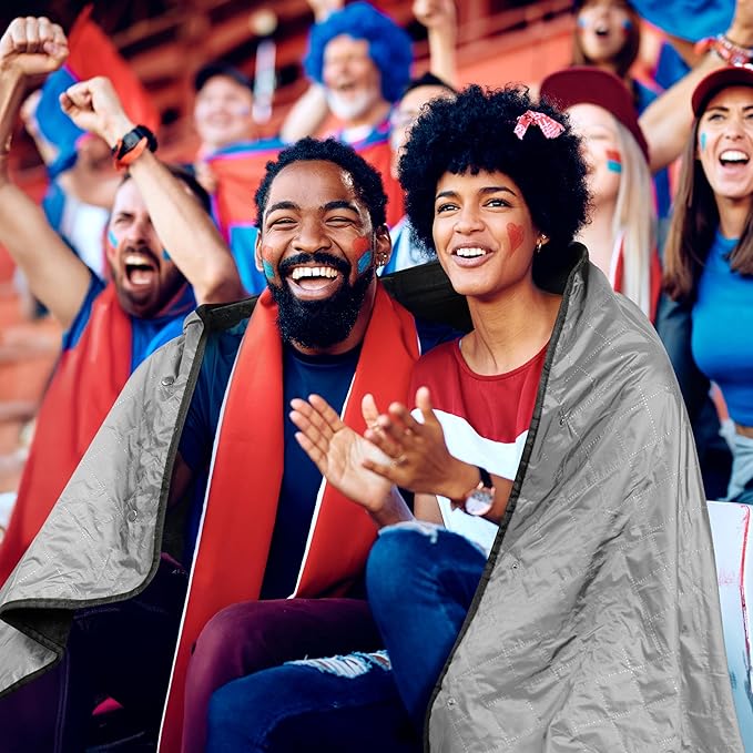 - 100% WATERPROOF AND WINDPROOF: This waterproof blanket outdoor has soft fleece on one side and waterproof taffeta polyester fabric on the back, keeping you dry as a picnic outdoor blanket This windproof stadium blanket can also be wrapped around you and your friends in wet cold weather. Perfect for camping, beach, sports, concert, festivals, hiking, road trips, car and even as a boat blanket!