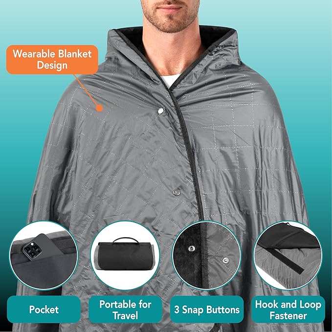 - REVERSIBLE AND WEARABLE: This sports blanket is reversible and the fleece blanket can be transformed into a waterproof poncho stadium blanket with our 3-button design to keep you cozy and dry at any sports game or festival. Big enough to share with a friend!