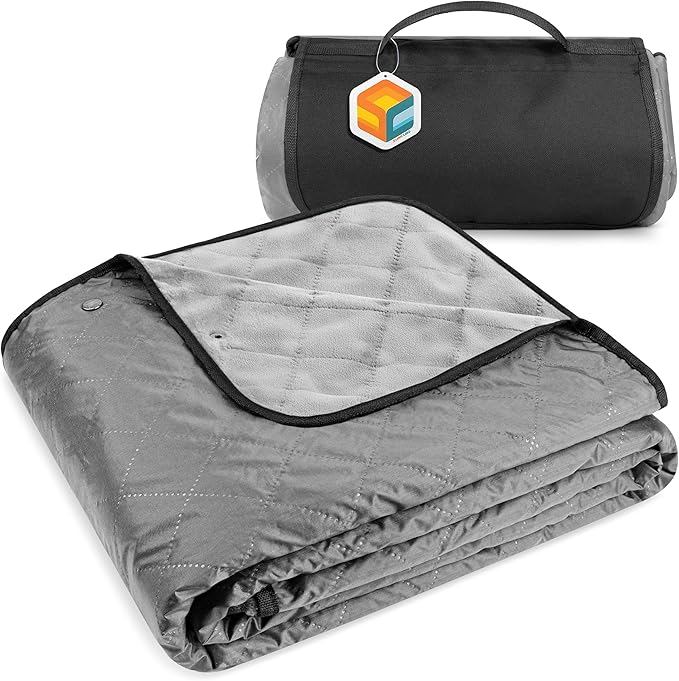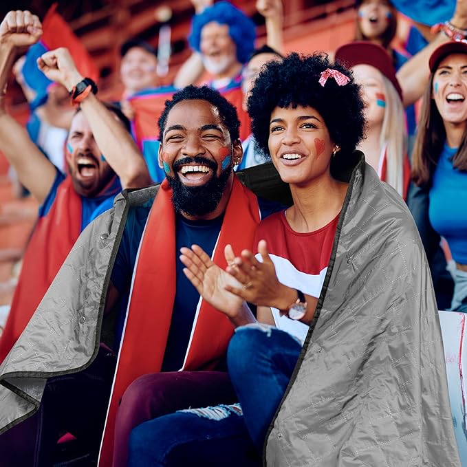 - 100% WATERPROOF AND WINDPROOF: This waterproof blanket outdoor has soft fleece on one side and waterproof taffeta polyester fabric on the back, keeping you dry as a picnic outdoor blanket This windproof stadium blanket can also be wrapped around you and your friends in wet cold weather. Perfect for camping, beach, sports, concert, festivals, hiking, road trips, car and even as a boat blanket!