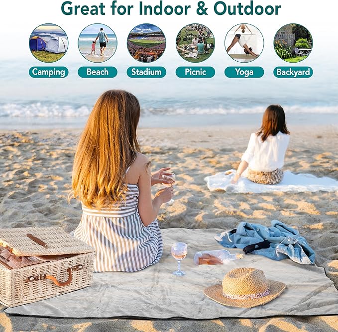 - MULTIFUNCTIONAL: This blanket for camping can also be used as a floor mat or stadium blanket during your favorite concert or festival. It can also be used as a sleeping blanket during your camping trip and road trips. Use it as a picnic blanket at the beach and outdoors without worrying about the sand, dirt, and dust