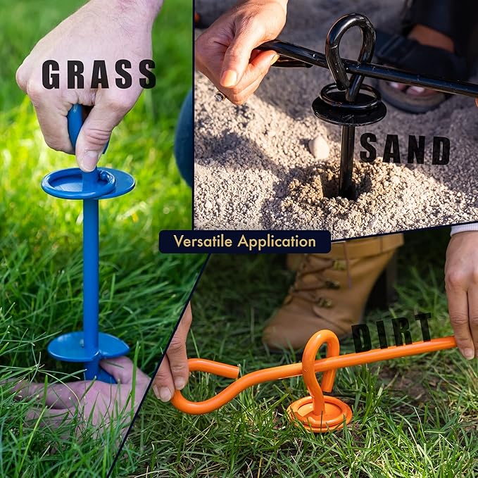 - [DOES IT WORK?] Yes! It allows your dog run around a full 360° using a dog lead or dog leash of your choice. Our dog anchor works on all surfaces including beach sand, clay, and rocky soil.